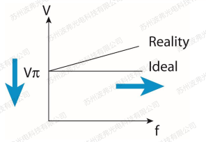 這是因?yàn)楸M管與材料無(wú)關(guān),但是設(shè)計(jì)和生產(chǎn)方面,任何射頻電子零部件,隨著頻率的升高都會(huì)有射頻的衰減,其功率從最高點(diǎn)下降到1/2的位置對(duì)應(yīng)的頻率,我們稱(chēng)為-3dB帶寬(請(qǐng)參考微信文章“iXblue電光調(diào)制器常見(jiàn)參數(shù)定義”)。雖然材料本身的參數(shù)并不隨頻率升高而變化,但是波導(dǎo)的電極等射頻部分不可避免的存在高頻衰減,因此調(diào)制器的射頻半波電壓Vp RF隨著頻率的升高而升高。