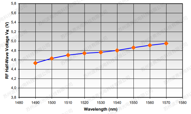 上圖給出了半波電壓隨激光光源波長(zhǎng)的變化。