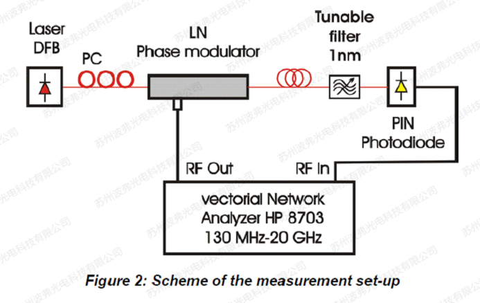 現(xiàn)在,如果用退火質(zhì)子交換技術(shù)APE來制作的電光調(diào)制器,就不能直接實現(xiàn)上面鈦擴散調(diào)制器帶寬的測量方法。最簡單的解決方案是在光纖馬赫-曾德M-Z干涉儀的一個臂上加入相位調(diào)制器。然而,這種干涉儀的熱不穩(wěn)定性很難控制。因此,頻率響應(yīng)會由于這些不穩(wěn)定性而產(chǎn)生畸變。