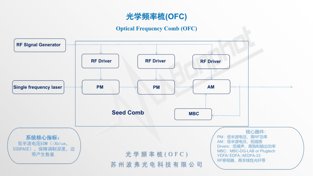蘇州波弗光電科技有限公司深耕于光電通信、光纖傳感等領(lǐng)域數(shù)十年,在光學(xué)頻率梳等應(yīng)用上非常專業(yè),我們可根據(jù)用戶的實際需求提供完整的系統(tǒng),從射頻元器件,到光學(xué)元件,提供理論和實踐支持。基于目前的器件限制,我們可以為用戶提供在1060nm波段、1550nm波段光學(xué)頻率梳應(yīng)用完善的系統(tǒng)支持,更多光學(xué)頻率梳應(yīng)用請聯(lián)系蘇州波弗光電科技有限公司相關(guān)銷售人員。