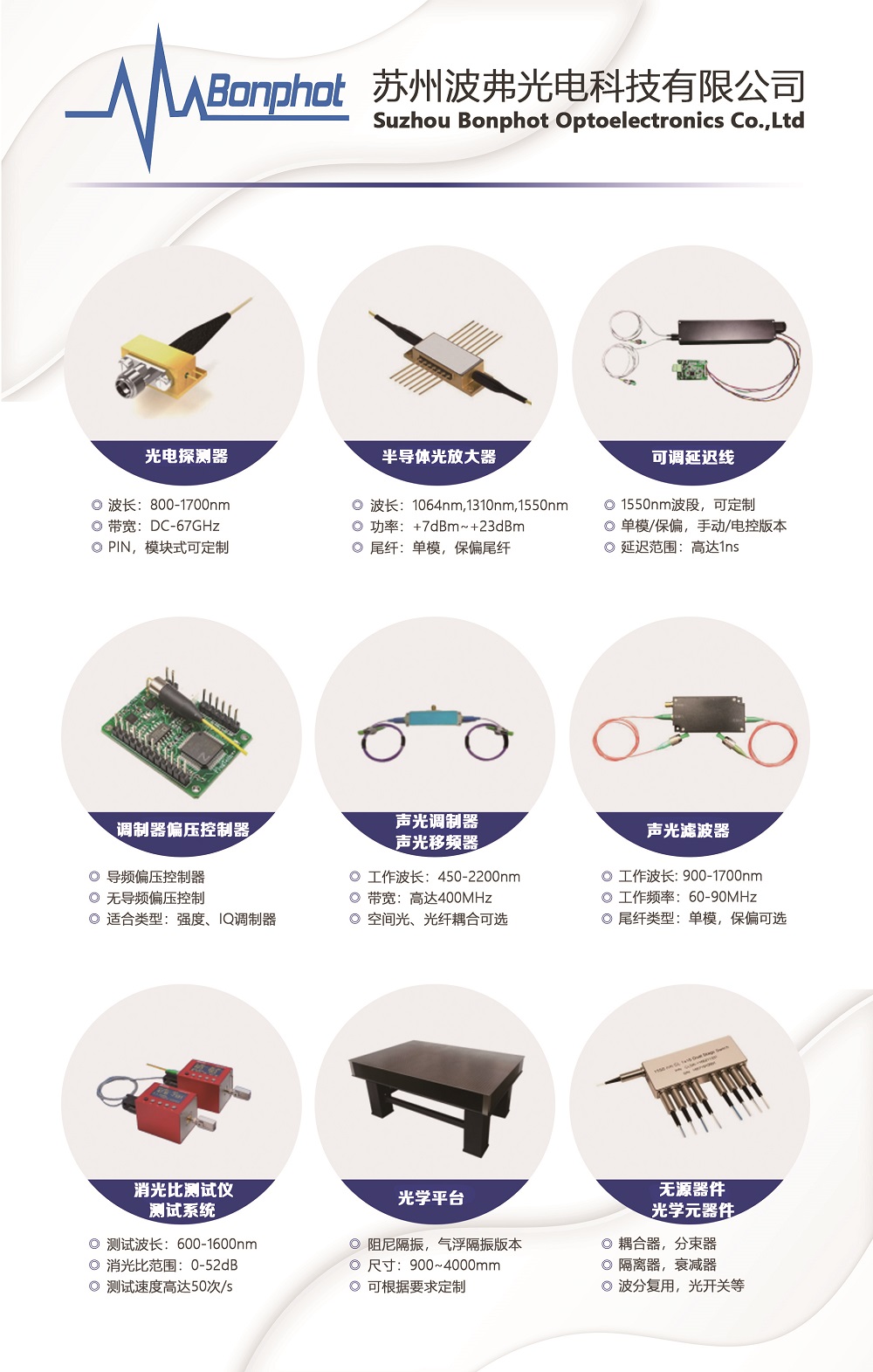 蘇州波弗光電科技有限公司成立于2015年,是一家專業(yè)從事,提供光學(xué)器件的代理、研發(fā)、生產(chǎn)、銷售提供相關(guān)應(yīng)用解決方案的高科技企業(yè),致力服務(wù)于光電通信、射頻光纖傳輸、衛(wèi)星通信、光纖傳感、量子冷原子、光學(xué)相干斷層掃描等應(yīng)用領(lǐng)域。
