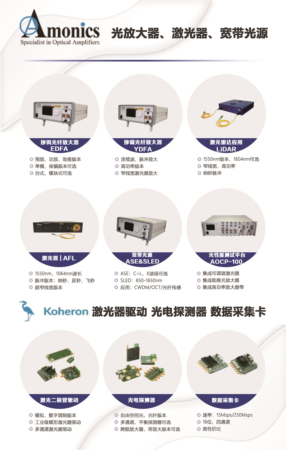 (4)Amonics:激光器&摻鉺光纖放大器 & Koheron 激光二極管驅(qū)動,光電二極管